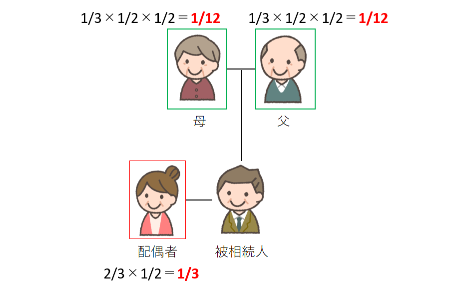 ④ 相続人が配偶者と父母(直系尊属)である場合
